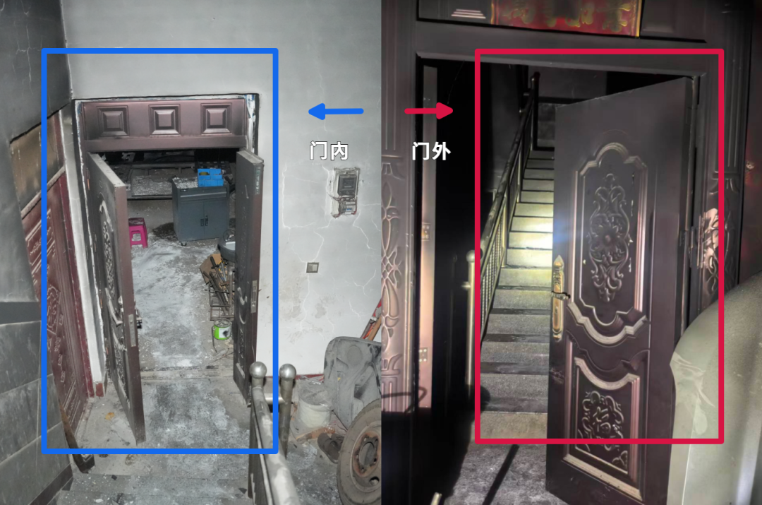 同时关闭二楼房间外窗,防止火势和浓烟通过窗户向室内蔓延。
